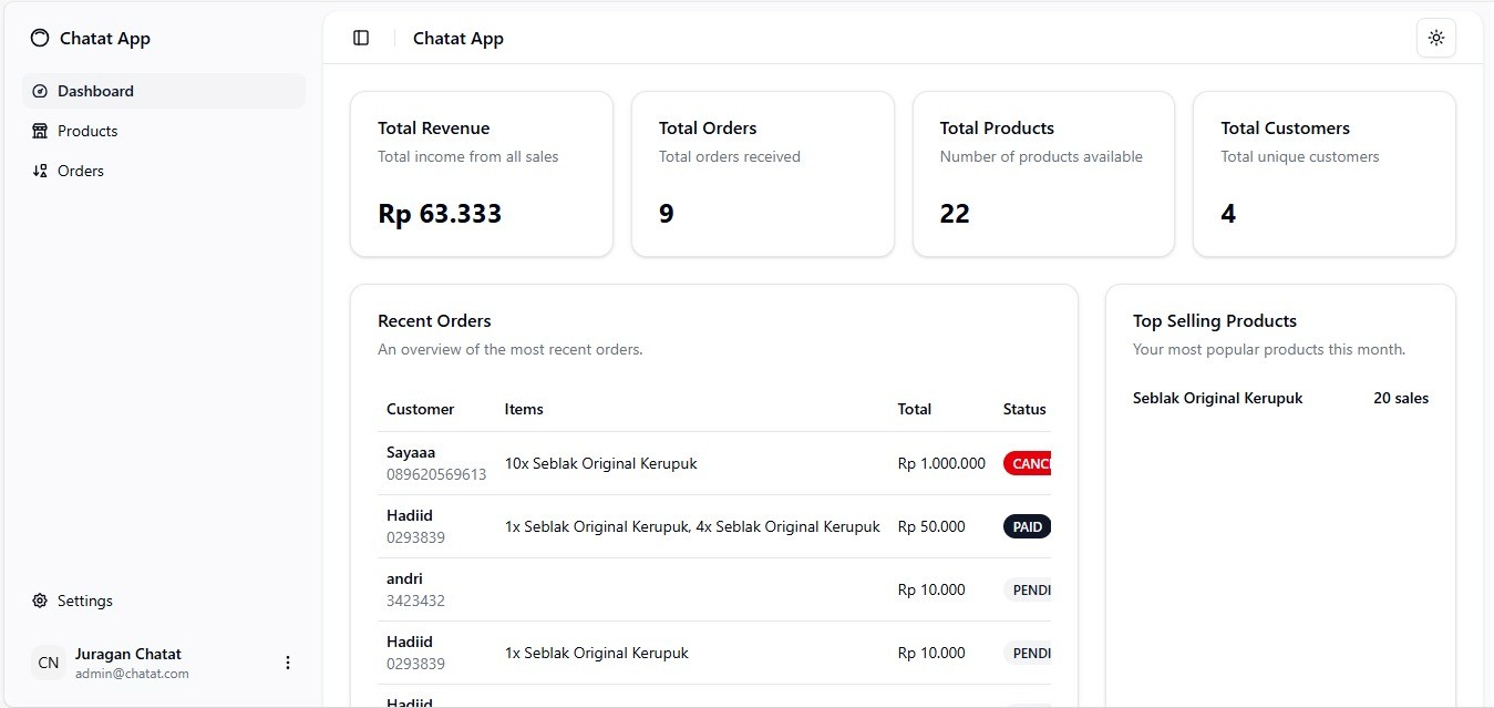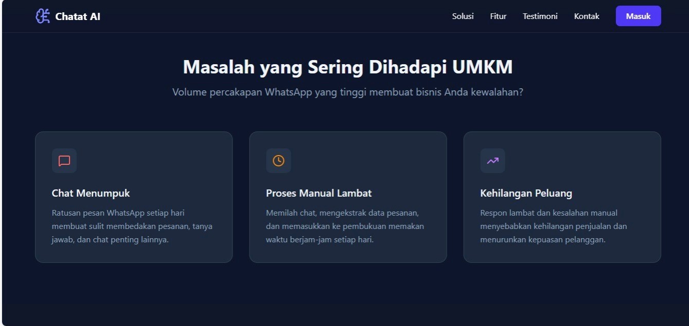 In Indonesia, millions of MSMEs (Micro, Small, and Medium Enterprises) conduct sales transactions directly via WhatsApp chat. Unfortunately, the order recapitulation process is still done manually—either handwritten or copied into Excel one by one. This process consumes hours daily, is highly prone to calculation errors, and hinders business growth.