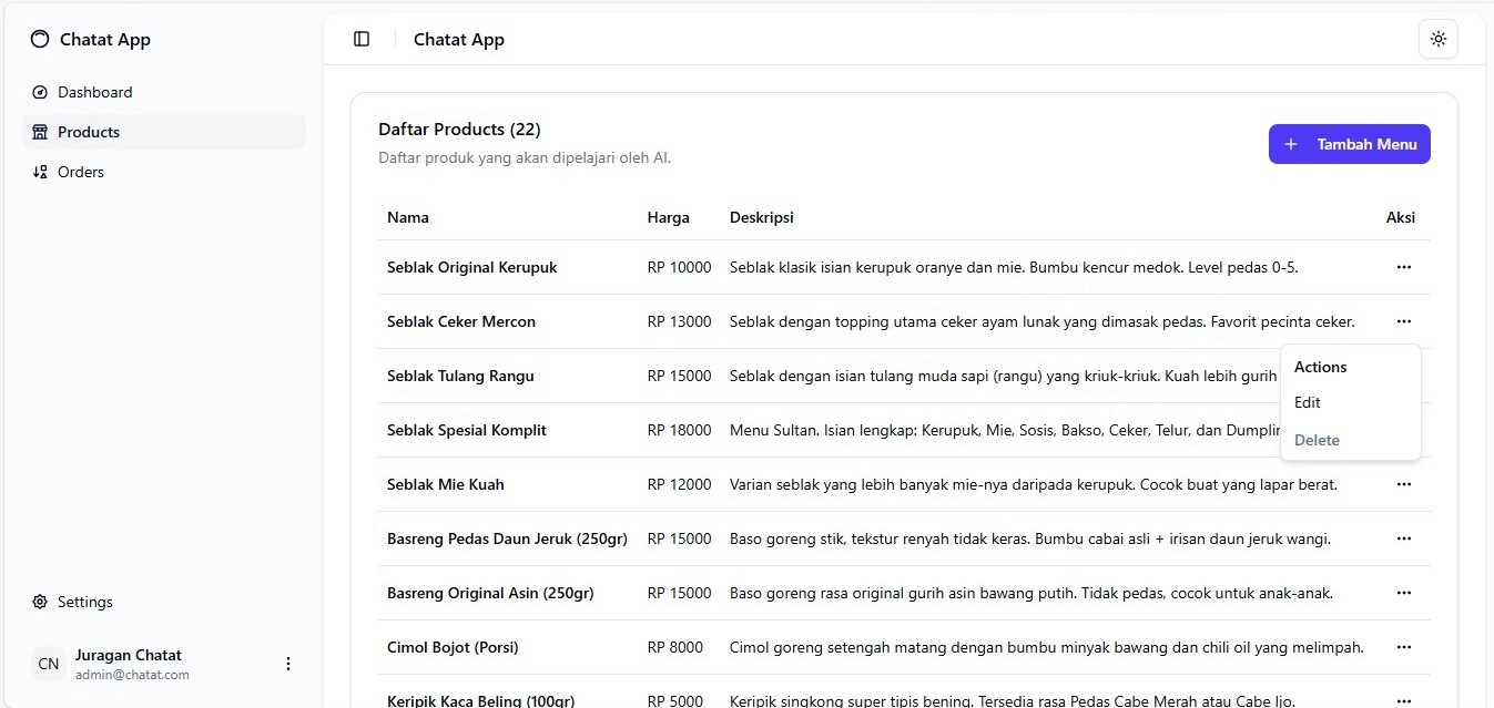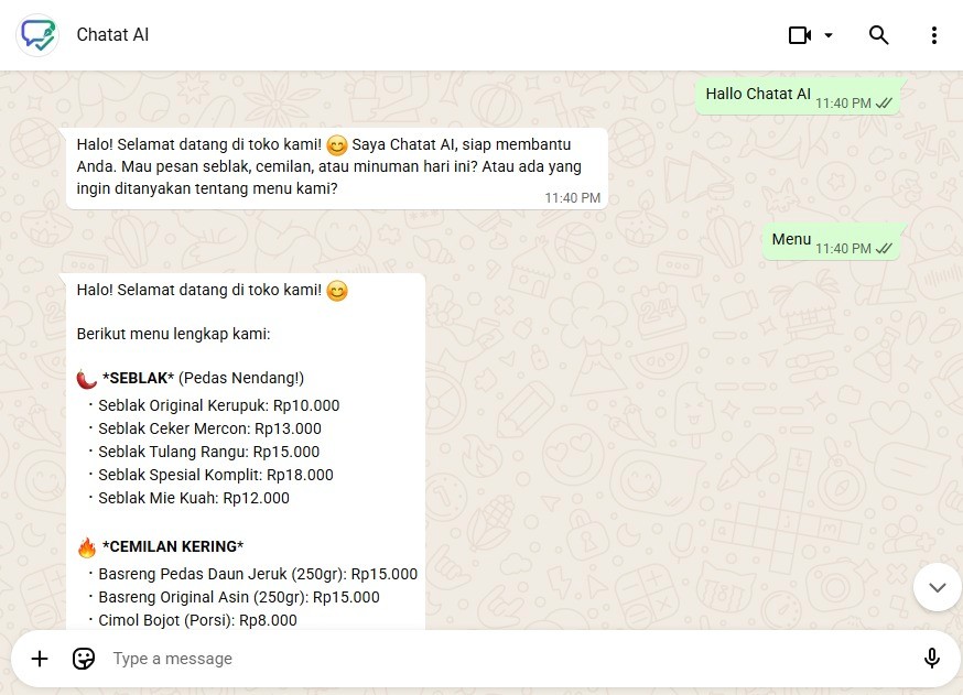 🤖 AI Smart Parser: Powered by Kolosal AI (Llama 4 Maverick), it understands informal Indonesian language context, distinguishing between "small talk" and "actual orders" with high accuracy.